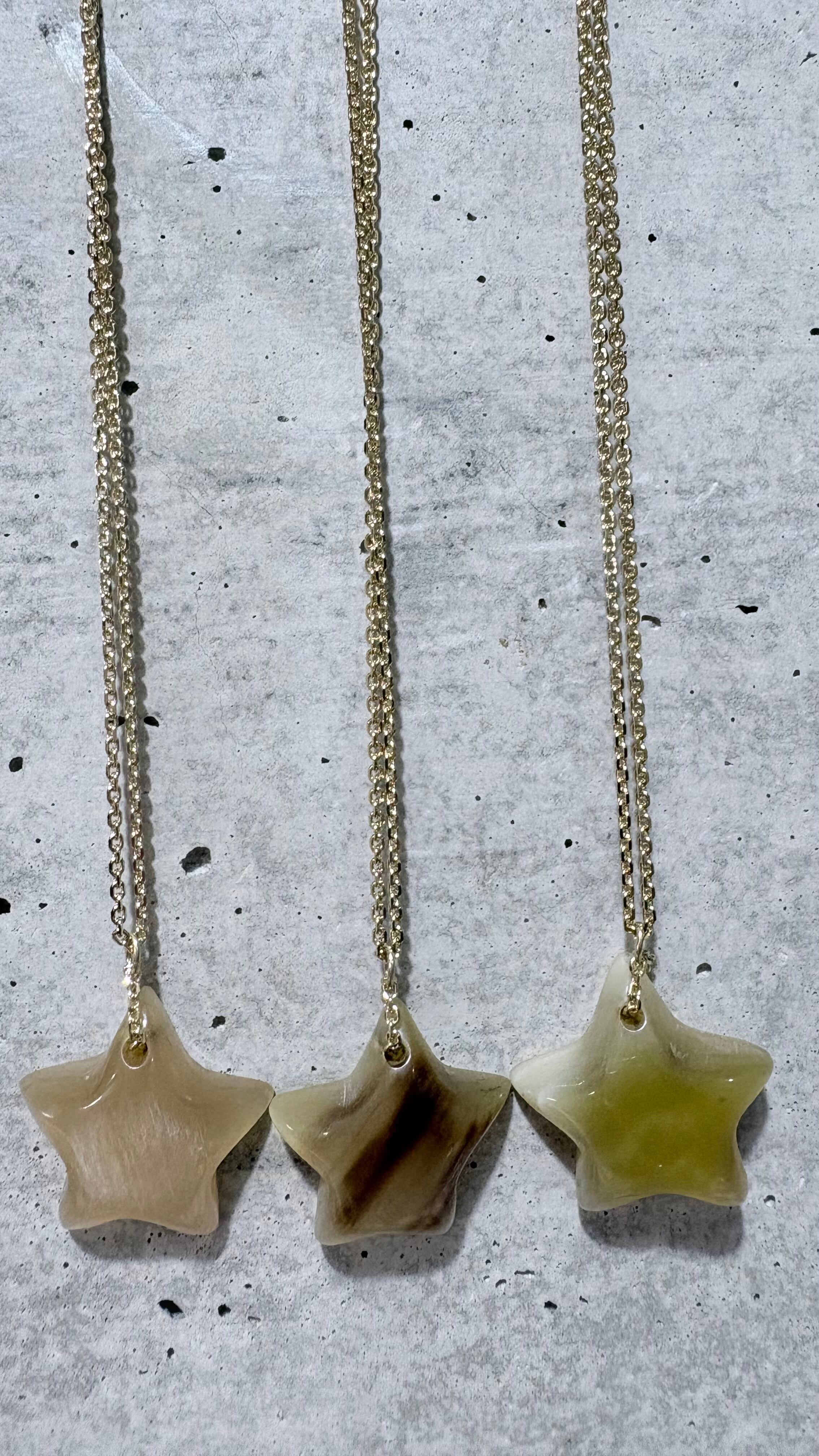 牛の角を一つ一つ、ハート型、星型、ダイヤ型に形成してもらいました。