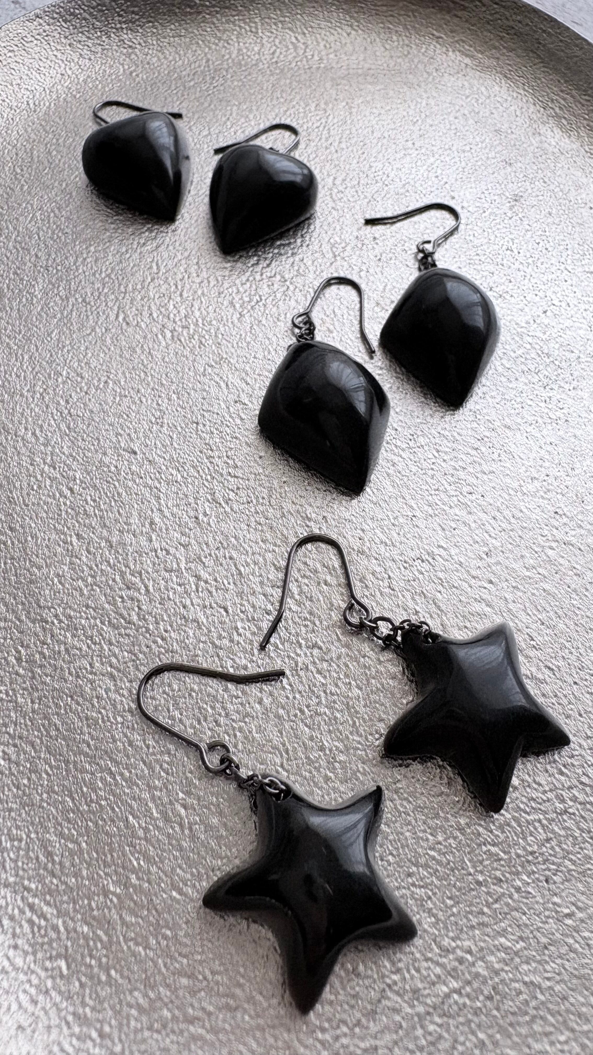 ホーンモチーフ フックピアス(ブラック)